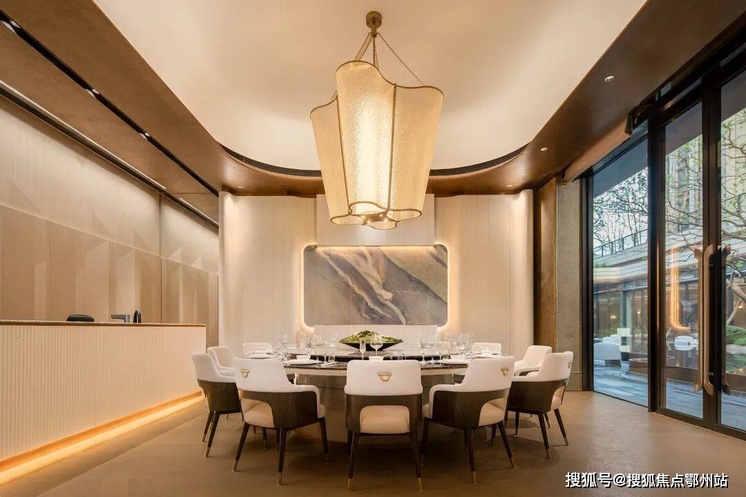 私宴厅&棋牌室承载了业主宴请、聚餐、洽谈、品茗、娱乐等多元社交场景。私宴厅当中悬挂的石材,来自项目团队多番挑选,来自一个奢石展馆里的孤品,不仅拥有昂贵的蓝泽,天生的羽毛状纹理更是罕见!