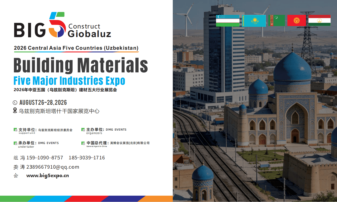 从4000公里高速公路升级到百万套住宅建设,从绿色建材强制标准到关税减免政策,乌兹别克斯坦正为全球建材企业提供前所未有的发展机遇。2026乌兹别克斯坦BIG5建材展,不仅是展示中国建材实力的国际舞台,更是链接政策红利、对接核心买家、实现本地化发展的战略枢纽。