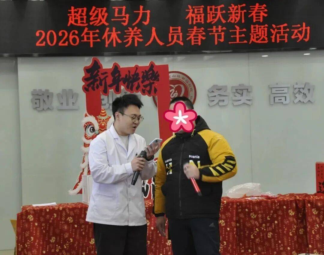 各病区紧扣马年新春主题,相继举办新春联欢会。歌声悠扬,康复操舒展,趣味游戏笑声不断,一个个精彩环节轮番登场。医护人员与休养员同台互动、其乐融融,掌声与欢笑声此起彼伏,汇成冬日里最温暖的乐章。