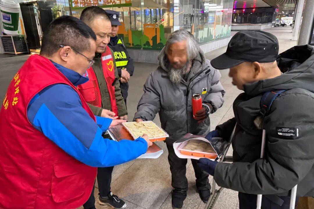 每到一处,工作人员都认真巡查、耐心询问,为临时遇困人员送上热气腾腾的水饺和暖心救助物资,细致讲解救助政策,引导其进站接受全方位帮扶,感受浓浓年味,让温暖在除夕夜的街头传递,让金陵关爱直抵人心。