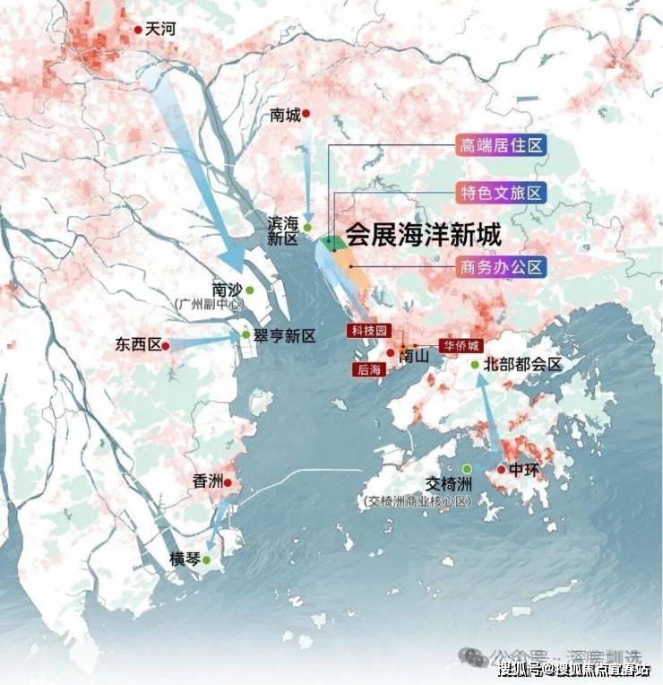 海上田园高端居住区,提供生态、静谧、纯粹的理想人居环境;涵盖会展新城和海洋新城两大产业商务办公区,吸纳客流。