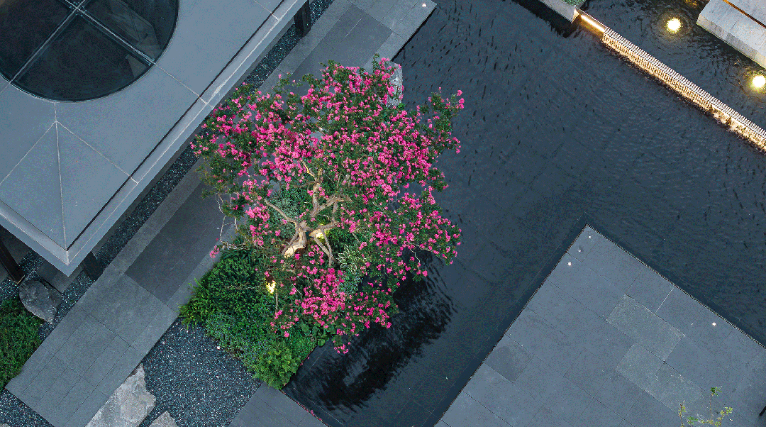 “中国黑老石皮”,千里迢迢空运而来,置于水境空间形成山水交融的意境,更显瑧悦高定奢境匠艺。