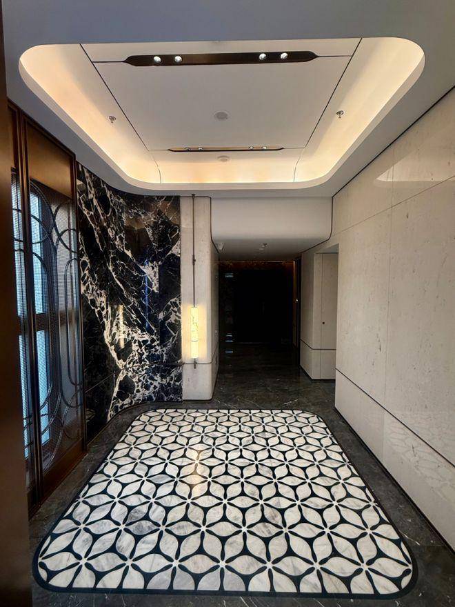 石材,则赋予步履以沉稳底色。更细腻的是,首层的电梯门采用蚀刻金属饰面电梯门,沉稳又奢华。首层大堂更是配置了中央空调,