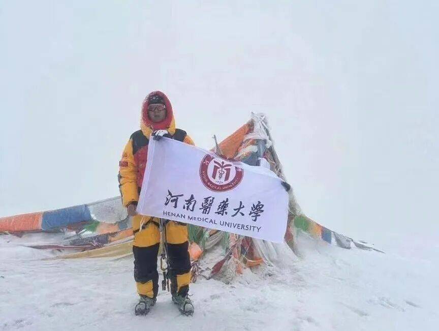 昆仑山东段最高峰玉珠峰海报6178米,凛冽的寒风如无形的刀刃,割裂昆仑山亘古的沉寂。8月4日清晨6点30分,天地苍茫之中,一面旗帜在玉珠峰顶烈烈寒风中被展开——那是河南医药大学的校旗!紧紧攥住旗子的,是该校第一临床学院2024级学生杨元春。几分钟前,他成功登顶玉珠峰。