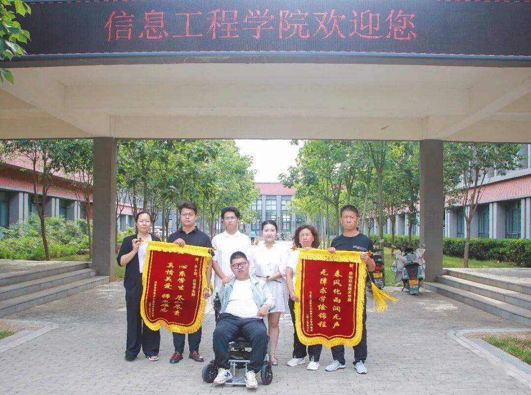 2023年11月,洛阳职业技术学院以《最温暖|感动!修坡道、无障碍改造、38人齐帮扶……》为题在学校官方微信公众号上报道了信息工程学院师生共同帮助行动不便的李智强的故事,这一暖心事迹先后被10余家媒体转载报道。6月24日,李智强和父母一起将两面锦旗分别送到了学院党总支副书记马侨丹和辅导员任善宇、班主任田小莉手中。
