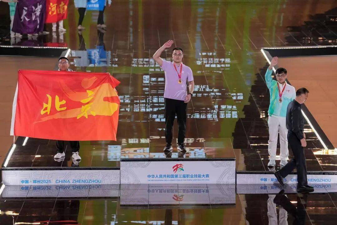 2025年9月23日晚,中华人民共和国第三届职业技能大赛闭幕式现场。当“智能制造工程技术(国赛精选)赛项金牌——河南代表团,张国佗”的宣布声响起,这位年轻的小伙子与身旁的指导老师贾艳瑞紧紧相拥,泪水夺眶而出。