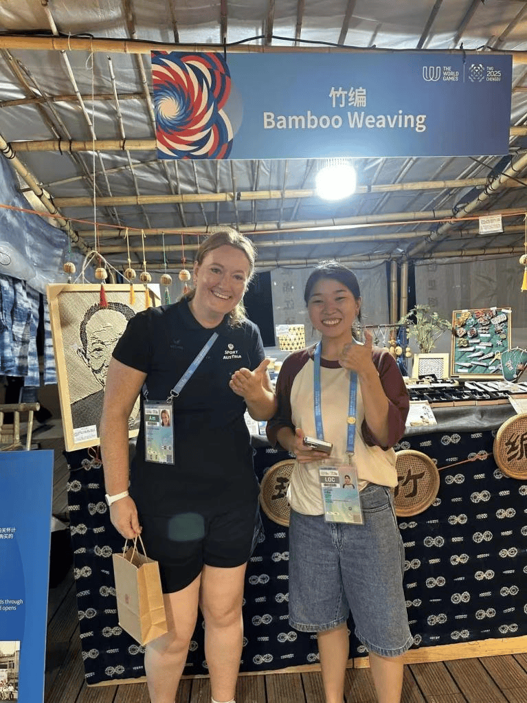 成都市残疾人非遗工匠刘罗琳制作的竹编产品在世运集市上受到各国运动员的广泛欢迎和高度认可