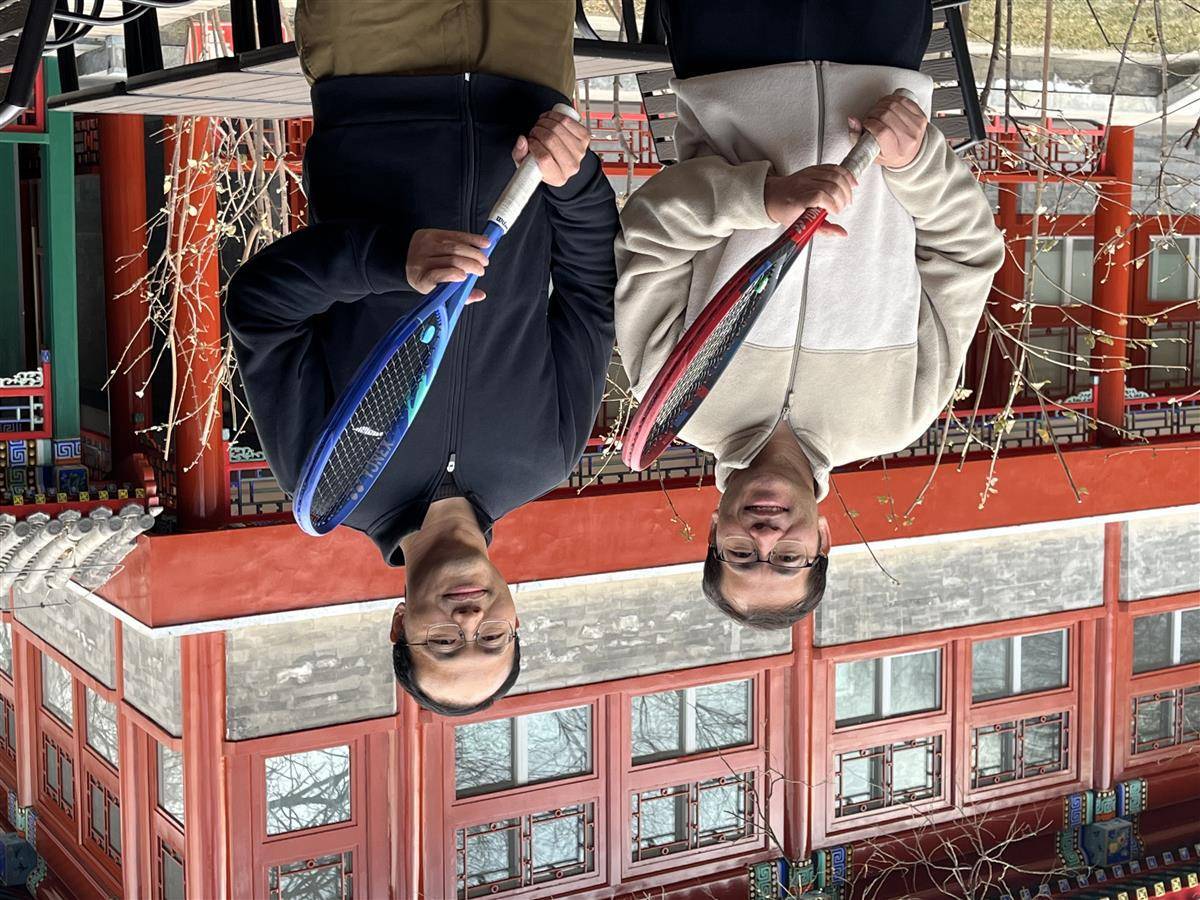 袁新意和另外一位湖北黄冈籍数学家杨诗武在北京国际数学研究中心,两人既是黄高校友,北大校友,北大同事,还是网球球友(受访者供图)