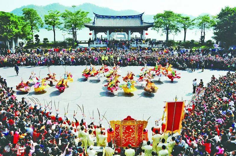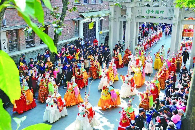 大年初一,饶平黄冈迎春文艺队伍闪亮登场,布马舞等民俗活动为群众献上文化盛宴。