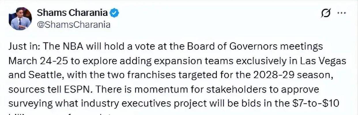 金年会,金年会体育,金年会体育app,金年会体育官方网站,金年会注册,金年会最新入口,金年会APP当ESPN曝出那条消息时,不少球迷直接在评论区炸了锅。NBA董事会准备投票,讨论拉斯维加斯和西雅图的扩军计划。这消息的分量,足够让一个春夜的朋友圈热闹起来。有人调侃,说拉斯维加斯会不会先建个赌场主题球场;有人感慨,西雅图终于要迎回超音速的魂。信息量太大,背后的逻辑也挺复杂,不只是“多两个队”的事,而是NBA的商业版图一次深度重塑。