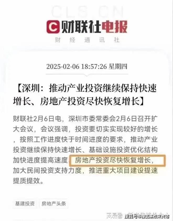 财联社2月6日电,深圳市2月6日召开扩大会议,会议强调,投资要切实实现较好的增长,按照工作进度快于时间进度的要求,推动产业投资继续保持快速增长、基础设施投资优化结构加快进度提高速度、房地产投资尽快恢复增长,加大民间投资支持力度,推进重大项目建设提速提质提效。