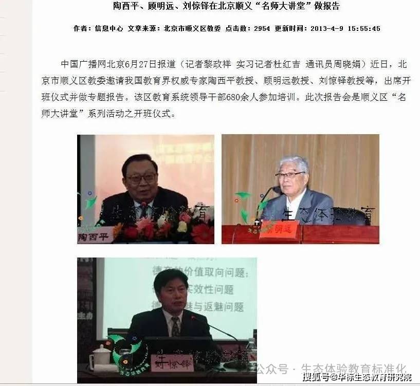 上图为:在北京市首届一把手校长德育论坛上,刘惊铎点评生态体验教育示范校人大附中刘彭芝校长、北京实验二小李烈校长的生态办学经验并作主旨演讲。在北京“顺义名师大讲堂”,刘惊铎教授与当代著名教育思想家陶西平先生(国家总督学顾问、联合国教科文组织协会世界联合会荣誉主席、全国人大教科文卫委员会委员、北京市教育委员会主任)、当代著名教育思想家顾明远教授(新中国比较教育学科奠基人、北京师范大学资深教授、世界比较教育学会联合会联合主席、国务院学位委员会教育学科评议组召集人、教育部教师教育专家委员会主任、中国教育学会会长)同台作主旨演讲,阐述生态体验理论在北京市教育整体改革中如何发挥改革制导的思想芯片作用,并在北京市16个区县实现多场景转化应用,催生了一批北京名校群。刘惊铎时任中央教育科学研究所(现为中国教育科学研究院)学校教育部部长,教育部中国德育中心主任,教育部体育、卫生与艺术教育中心主任,教育部德育专家委员会主任,国务院、中组部、教育部和生态环境部智库专家。《中央电视台》《中国教育电视台》《北京电视台》《新华网》进行专题报道。