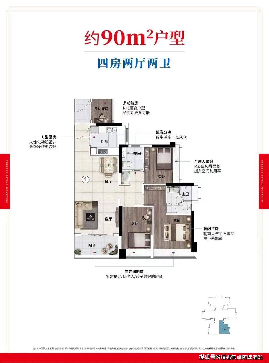答:是的,项目主打79-98㎡四房户型,采用N+1设计思路,实现户户带主套的超高实用率。同等面积段市场上多为三房设计,而本项目能做到四房两卫,性价比极具竞争力。