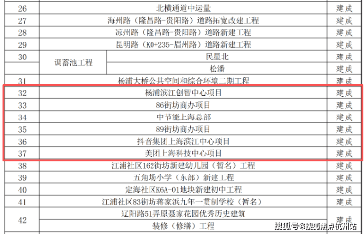 这份来自杨浦区官方公示的项目清单,清晰标注了从“新开工”“在建”到“建成”的全周期进度。其中,抖音、美团、滨江创智中心的全面建成,将杨浦滨江的发展确定性,从蓝图实实在在落地为实景。